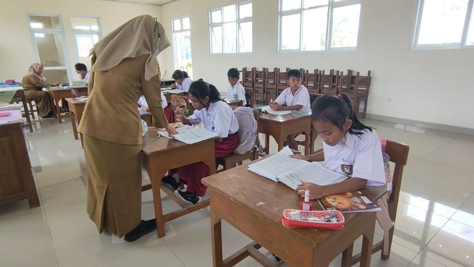 Pemindahan lokasi belajar mulai diberlakukan pada Senin (26/1/2026) menyusul rusaknya atap teras bagian depan bangunan sekolah yang dinilai membahayakan keselamatan siswa dan guru.